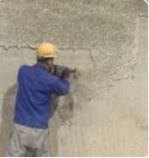 采用機械徹底、完整打磨混凝土基層表面,除去原表面的反堿、塵土、薄膜、油漆、表面涂層及其它外來物,并鏟除疏松、空鼓和蜂窩結構,使表面徹底浸透,除去積水和明水