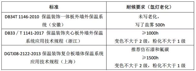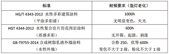 1.1常用外墻涂料標準耐候性指標說明
