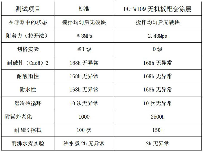 圖1.FC-W109無機板配套涂層拉拔