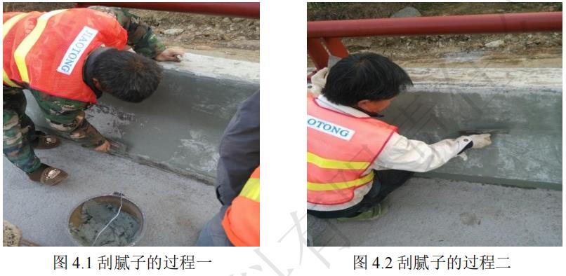 第四道工序:用混凝土結構修補專用找平材料刮批填平整混凝土