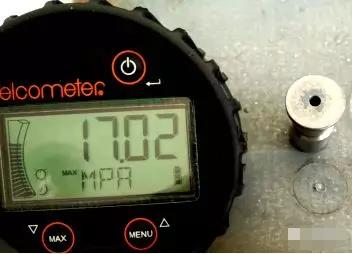 上年檢測了一些室外置放了很多年的樣版,用易高108附著力測試漆膜的附著力,基本上都會15MPa左右,損壞方式以粘膠劑損壞主導,如圖已知4圖示。用打磨砂紙打磨拋光漆膜表層,里邊外露黑亮的金屬質感。